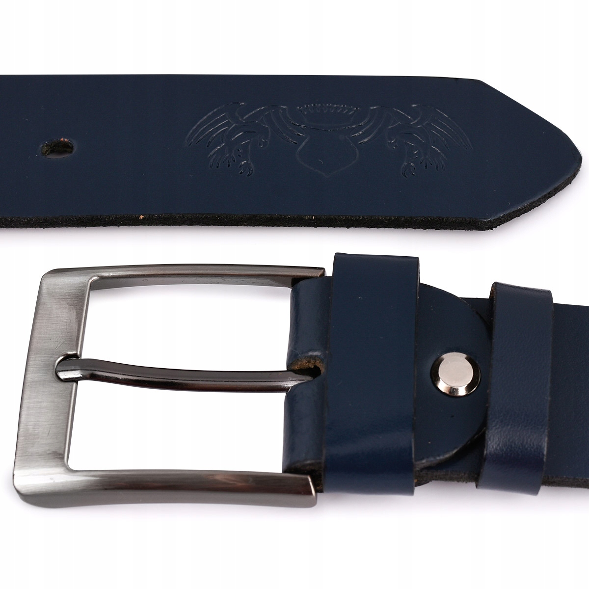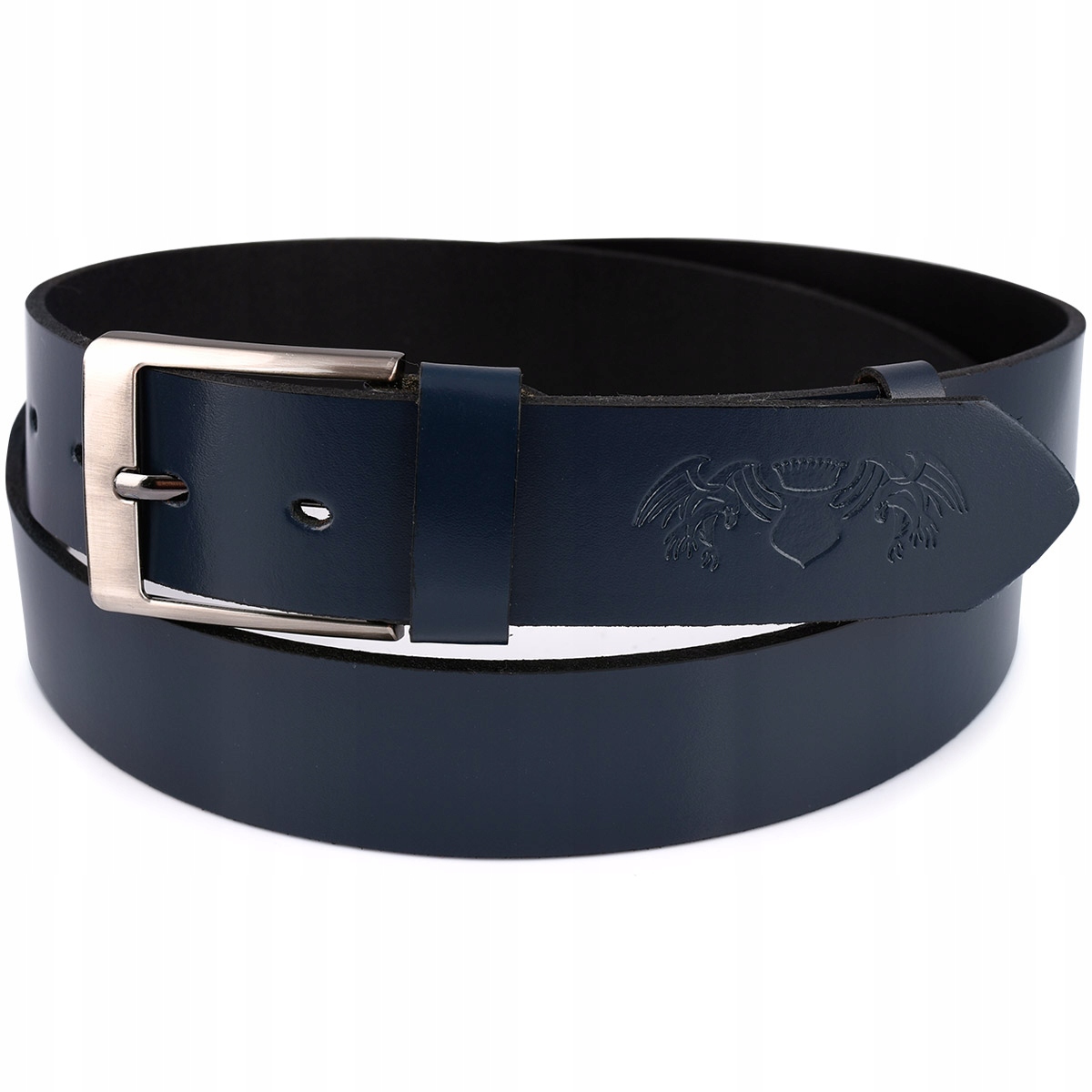 Oferowany granatowy, skórzany pasek, to przede wszystkim kultowa pozycja na rynku europejskim. Uniwersalny kolor, prosta i elegancka klamra sprawiają, że pasek sprawdzi się do większości eleganckich, czy casualowych spodni.